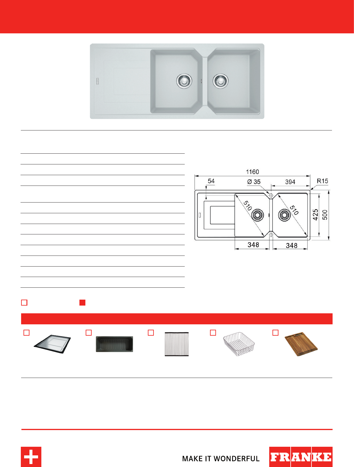 BARE SINK OPTION AND SOME SINK & TAP PACKAGES DO NOT INCLUDE ACCESSORIES.