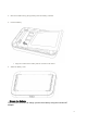 Part Description Display View device status and information SIM card slot Install the SIM card. AC Charging micro USB port Connect the micro USB cable for charging. Battery cover Remove the battery cover to remove or insert the battery or SIM card. Settings Reset button Press to reset your device to its default settings. Power (Menu) button Long press to toggle power on or off.