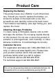 Product Care Replacing the Battery This product uses one CR2032, 3-volt lithium battery. Should you need to replace the battery, unscrew the screws on the back with a very fine screwdriver and carefully remove the back cover. Then install a new battery, plus sign facing you, and replace the cover. Cleaning, Storage, Problems To clean, spray a mild glass cleaner onto a cloth and wipe the surface. Do not spray liquids directly on this product.