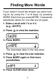 Finding More Words If you haven’t found the answer you were looking for by using the ? or ✽ keys, try pressing MORE. Each time you press MORE, Crosswords substitutes letters for one that you’ve typed. 1. Enter a word with ?’s or ✽’s (e.g., SH?P?). 2. Press to view the matches. 3. Press MORE. The lowercase letter is the new letter. 4. Press to view the new matches. 5. Press MORE again to find more possibilities. 6. Press CLEAR when done.