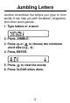 Jumbling Letters Jumble scrambles the letters you type to form words. It can help you with Scrabble®, anagrams, and other word games. 1. Type letters or a word. 2. Press JUMBLE. or to choose the minimum 3. Press word size (e.g., 4 ). 4. Press ENTER. 5. Press to view the words. 6. Press CLEAR when done.