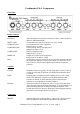 Fredenstein V.A.S. Compressor Front View: Rotary Controls: B-WIDTH : INPUT GAIN COMP ATTACK : : COMP RELEASE : COMP RATIO : MAKE-UP : MIX : Side-Chain Filter control, fully clockwise no filter, counter clockwise 2KHz to 20KHz Bandwidth Sets the line level gain in the range from -10 to +20dB Sets the attack time of the compressor Range from 0.5 to 50ms Sets the release time of the compressor Range from 70ms to 2.