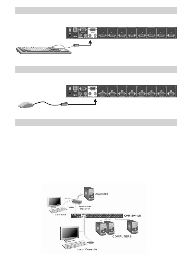 (3) Connect remote keyboard, mouse and monitor with PS/2-EXTENDER-RECEIVER “KB“,