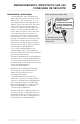 RENSEIGNEMENTS IMPORTANTS SUR LES CONSIGNES DE SÉCURITÉ Consignes de sécurité • NE PAS entreposer ni utiliser d’essence ou d’autres liquides inflammables à proximité de cet appareil ou de tout autre appareil. Lire les étiquettes des produits pour connaître les mises en garde concernant l’inflammabilité et autres dangers. • NE PAS faire fonctionner le réfrigérateur en présence de vapeurs explosives. • Éviter tout contact avec les pièces mobiles de la machine à glaçons automatique.