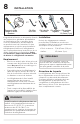 INSTALLATION DE LA POIGNÉE DE PORTE 15 PRUDENCE Porter des gants et des lunettes de sécurité. Demeurer extrêmement PRUDENT lors de l’installation de ces poignées. Instructions de montage de la poignée de porte pour Frigidaire Professional 1. Retirer les poignées du carton et de tout autre emballage de protection. 2.
