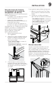 INSTALLATION Mise de niveau de l’armoire et alignement de la porte du réfrigérateur (au besoin) Lignes directrices pour le positionnement final du réfrigérateur : • Les quatre coins de l’armoire doivent reposer fermement sur le sol. • L’avant doit être légèrement surélevé pour assurer la fermeture et l’étanchéité des portes. • Les portes doivent être alignées les unes avec les autres et être de niveau.