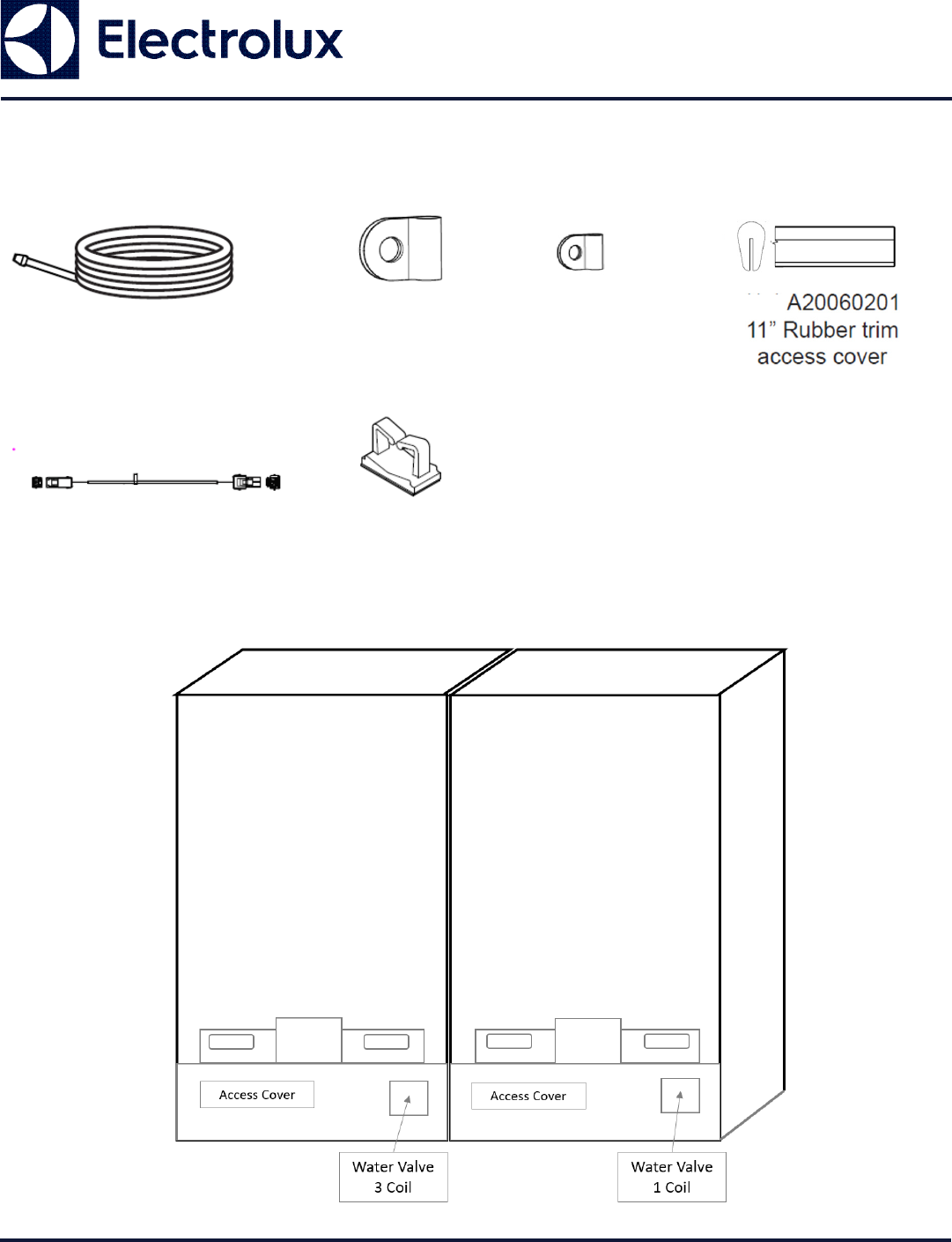 FILTERED ICE KIT: TTFLTRICEKIT Models: INSTRUCTION SHEET FPFU19F8WF FPRU19F8WF EI33AF80WS EI33AR80WS Kit Contents: B A (1x) 218976831 1/4” Green water line, 16 feet C D C (2x) 240396805 (2x) 240396804 1/4” Green water line 1/8” Wiring harness strain relief strain relief (2x) F E (1x) A19408101 Wiring Harness 19 Feet (2x) 305346-00 Wiring Harness support clips ORIGINAL CONFIGURATION Rear View Refrigerator Rear View Freezer © 2020 Electrolux Home Products, Inc.