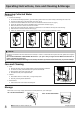 Operating Instructions Removing Collected Water 1. Emptying the Bucket: a. When the bucket is full, the unit will shut down and the BUCKET FULL indicator will illuminate. b. Do not move the unit at this time otherwise water may spill on the floor. c. Press sides of bucket gently to unclip the bucket from the unit. d. Remove the bucket as shown in the photographs below and empty the bucket. WARNING Discard water from bucket. Water is not potable and cannot be used for drinking. e.