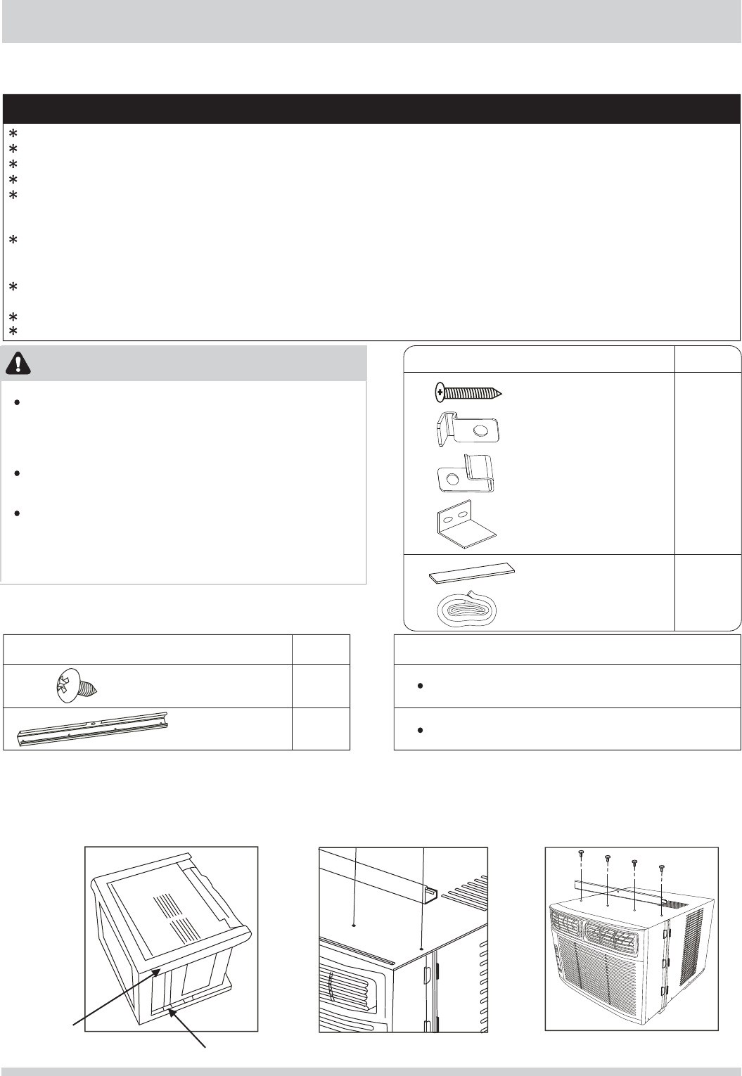 Carefully inspect location where air conditioner will be installed. Be sure it will support the weight of the unit overan extended