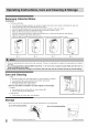 Operating Instructions Removing Collected Water ©. Emptying the Buck a. When the buck is full, the nit will shay don and tha BUCKET FULL incarnate will illuminate. fair fan v a timer ON-DEF sped — b. Do not move the unt at tis time otherwise water sy spit on the Oar €. Press sites of bucket gently fo punchy the buck from the uni. Remove the bucket ws shown i the autographs below and empty he bucket. 4b wane signboard water from bucket. Water is not potable and cannot be used far drinking.