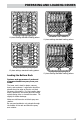 PREPARING AND LOADING DISHES 10 place settings standard loading pattern 10 place settings standard loading pattern. 12 place settings standard loading pattern 12 place settings standard loading pattern. Loading the Bottom Rack Features and appearance of racks and silverware basket may vary from your model. The lower rack is best for plates, saucers, bowls, and cookware. Large items should be placed along the edge so they do not block the spray arm rotation.