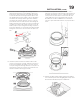 20 INSTALLATION (SUITE) E. Prenez la portion restante de l'assemblage de fixation que vous aviez placé de côté. Sous l’évier insérez le joint d’étanchéité en fibre (voir E1), puis la bague de montage (E2), et ensuite la bague de montage supérieure (voir E3). F. Maintenez les trois parties en place tout en fixant l'anneau de retenue (voir F1) en l'écartant et en le plaçant dans la rainure du collet d’évier (voir F2). G. Serrez les trois vis de fixation fermement contre le collet d’évier (voir G1).