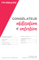 CONGÉLATEUR utilisation et entretien Renseignements importants concernant la sécurité.........................................2 Entretien et nettoyage........................................9 Caractéristiques.....................................................4 Panne d’alimentation et du congélateur............................................................. 11 Installation.................................................................5 Dépannage ..................................................