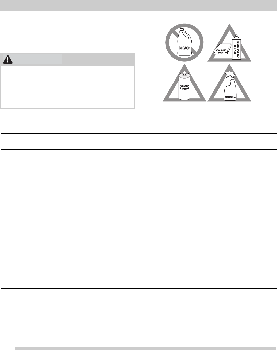 appliance cleaner, stainless steel cleaner, or cleaner containing abrasives, chlorides,