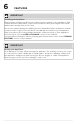 FEATURES Features may vary according to model F G E E G G C G D C G B H A H A Power On LED E Full-Depth Freezer Shelves B Freezer Wire Basket F Interior LED C Short-Depth Freezer Shelves G Fixed Door Bins D Temperature Control Knob H Front Leveling Feet 5