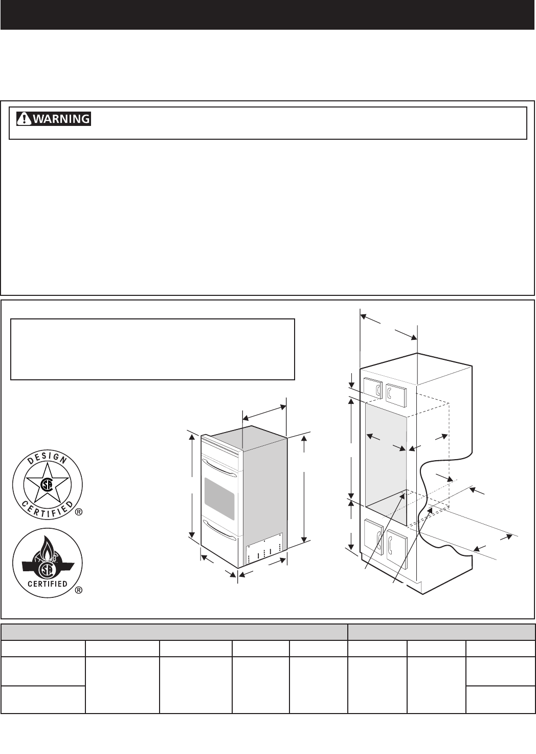 GAS WALL OVEN INSTALLATION INSTRUCTIONS INSTALLATION AND SERVICE MUST BE PERFORMED BY A QUALIFIED INSTALLER. IMPORTANT: SAVE FOR LOCAL ELECTRICAL INSPECTOR'S USE. READ AND SAVE THESE INSTRUCTIONS FOR FUTURE REFERENCE. If the information in this manual is not followed exactly, a fire or explosion may result causing property damage, personal injury or death. FOR YOUR SAFETY: — Do not store or use gasoline or other flammable vapors and liquids in the vicinity of this or any other appliance.