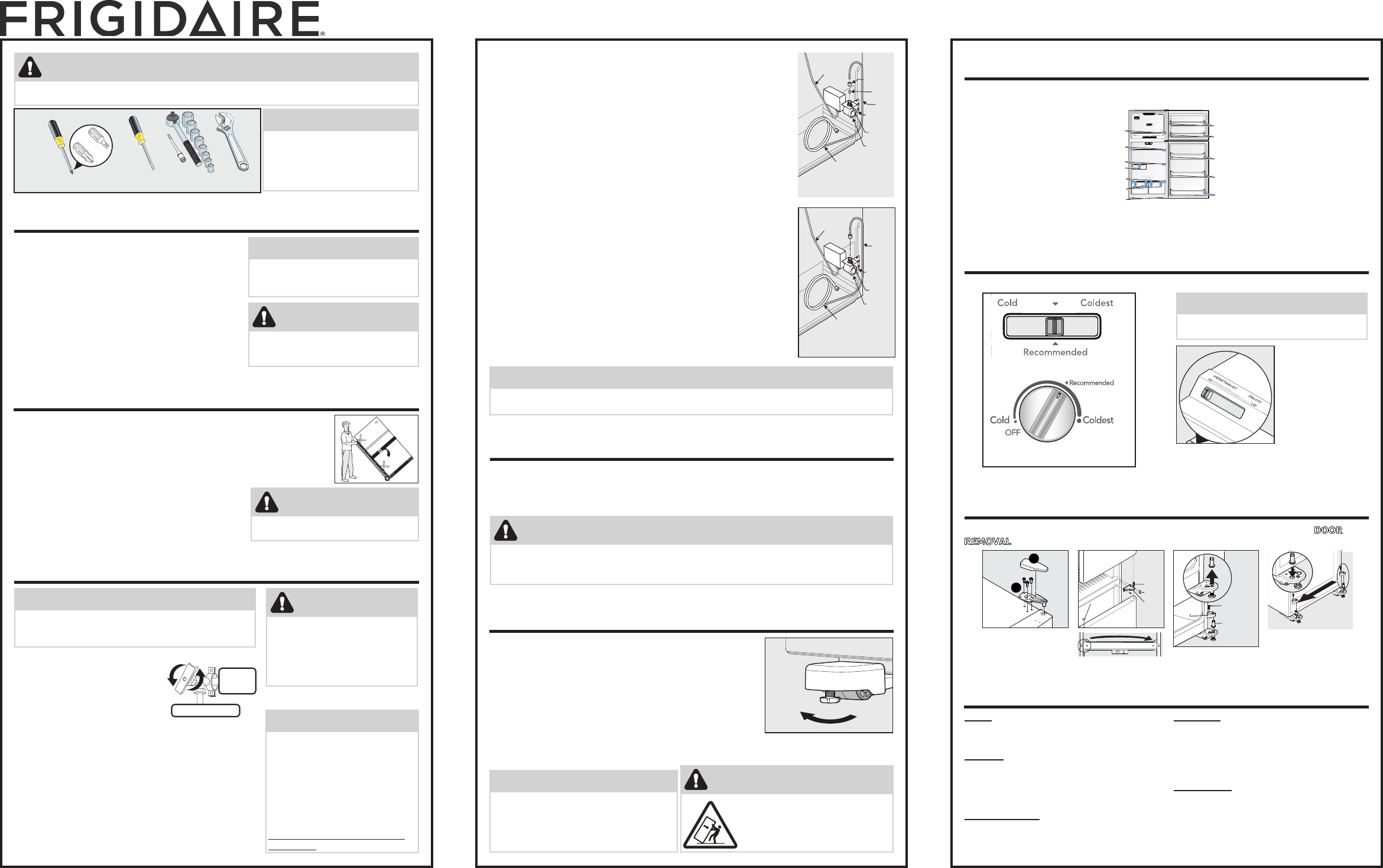 Not satised with the installation of your refrigerator? Please contact the store from which you purchased your refrigerator.