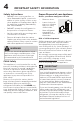 IMPORTANT SAFETY INFORMATION Safety Instructions • DO NOT store or use gasoline, or other flammable liquids, or aerosols within or in the vicinity of this or any other appliance. Read product labels for warnings regarding flammability and other hazards. • DO NOT operate the refrigerator in the presence of explosive fumes. • Avoid contact with any moving parts of automatic ice maker. • Proper Disposal of your Appliance Before you throw away your old unit: • Remove doors.