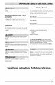 F IGIDAI TABLE Important Safety Instructions E OF CONTENTS ........................... 2-5 Warranty ......................................................... 21 ....................... 6-12 Notes ............................................................. 22 13-16 Fran_als ........................................................... 23 Care and Cleaning ........................................ 17-18 Espa_ol ........................................................... 45 Avoid Servtce ..