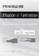 Tout sur l’ Utilisation et l’entretien de votre Conditionneur d’air de pièce So m m ai r e Consignes de sécurité Con é im impo portan tantes tes 2-3 Entretien et nettoyage Enregi egistr s ement du pro produi du t 4 Suggestions pour économiser l’énergie 7 Emballage e 4 Avant Ava nt d’a d appe p ler 8 Sons normaux 4 G ant Gar antie ie e lim limité ité é d’ d app appare areilil pri p ncipale 9 In nstructions de fo onc nctionnement 5 5-6 USA 1-800-944-9044 w w.frigidaire.