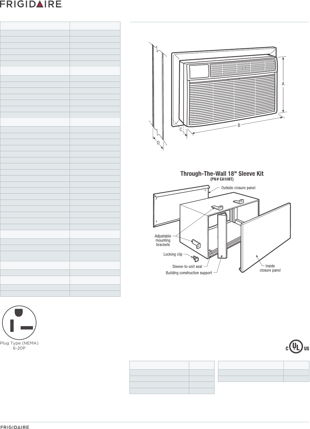 RAC Through-The-Wall Models (18" Sleeve Kit EA108T)