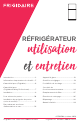 RÉFRIGÉRATEUR utilisation et entretien Introduction........................................................2 Appareil à glace.............................................. 18 Informations importantes de sécurité......3 Contrôles et réglages................................... 19 Caractéristiques (Frigidaire)........................6 Possibilités de stockage............................. 22 Caractéristiques (Frigidaire Gallery/Professional)................7 Sonorités de fonctionnement normaux.........