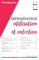 RÉFRIGÉRATEUR utilisation et entretien Introduction........................................................2 Appareil à glace.............................................. 18 Informations importantes de sécurité......3 Contrôles et réglages .................................. 19 Caractéristiques (Frigidaire)........................6 Possibilités de stockage............................. 22 Caractéristiques (Frigidaire Gallery/Professional)................7 Sonorités de fonctionnement normaux....