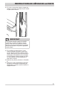 INSTRUCTIONS DE DÉPOSE DE LA PORTE 9 Dévissez l'axe de la charnière inférieure à l'aide d'une clé à molette. Insérez l'axe dans l'autre trou de la charnière, puis serrez-le au moyen d'une clé à molette. 10 Inversez les poignées de porte (reportez-vous aux instructions de la page suivante). 11 Installez les butées de porte du réfrigérateur et du congélateur sur le côté opposé. Avant d'insérer les vis, percez la mousse à l'aide d'un poinçon.