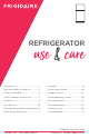 REFRIGERATOR use & care Introduction........................................................2 Ice Maker........................................................... 19 Important Safety information.....................3 Controls and Settings .................................20 Features (Frigidaire).......................................6 Storage Features........................................... 23 Features (Gallery/Professional)..................7 Normal Operating Sounds.........................