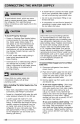 CONNECTING THE WATER SUPPLY Ah warns To avoid electric shock, which can cause death or severe personal injury, disconnect the refrigerator from electrical power before connecting a water supply line to the refrigerator. AL cardamon To Avoid Property Damage: Copper or Stainless Steel braided tubing is recommended for the water supply line. Water supply tubing made of 14 inch plastic is not recommended to be used.