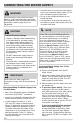 CONNECTING THE WATER SUPPLY 5 With steel clamp and screw, secure water supply line (copper tubing only) to rear panel of refrigerator as shown. 6 Coil excess water supply line (copper tubing only), about 2½ turns, behind refrigerator as shown and arrange coils so they do not vibrate or wear against any other surface. Plastic Water Tubing to Ice Maker Fill Tube Braided Flexible Stainless Steel Water Line 7 Turn ON water supply at shutoff valve and tighten any connections that leak.