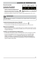 AJUSTES DE TEMPERATURA Ajustes de temperatura • El rango de ajustes de temperatura es el siguiente. 41°F 42°F 43°F 44°F 45°F ...... 62°F 63°F 64°F 5°C 6°C 7°C 8°C 9°C ...... 16°C 17°C 18°C NOTA Cuando se alcance la temperatura más alta/baja, la pantalla emitirá un pitido. Pulse de nuevo para aumentar/disminuir la temperatura hasta el ajuste deseado. • Toque directamente + o – para ajustar la temperatura del enfriador.