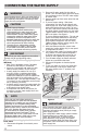 CONNECTING THE WATER SUPPLY WARNING To avoid electric shock, which can cause death or severe personal injury, disconnect the refrigerator from electrical power before connecting a water supply line to the refrigerator. CAUTION To Avoid Property Damage: • Copper or Stainless Steel braided tubing is recommended for the water supply line. Water supply tubing made of ¼ inch plastic is not recommended to be used.