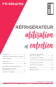 RÉFRIGÉRATEUR utilisation et entretien Introduction........................................................2 Informations importantes de sécurité......3 Caractéristiques .............................................6 Installation..........................................................7 Retrait des la porte ......................................10 Installation de la poignée de porte......... 12 Raccordement au réseau d’alimentation en eau...................................