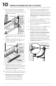 RETRAIT/INVERSION DE LA PORTE 6. Desserrez les deux vis extérieures du côté opposé du réfrigérateur. Retirez la vis intérieure et installez la charnière centrale. Butée Vis de butée Rondelle Cale Axe de charnière Charnière centrale Vis Bouchon de charnière 7. 8. Bouchons de poignée Retirez les deux vis de la charnière inférieure avec une clé à douille de ⅜ po. Installez la charnière inférieure sur le côté opposé avec les deux vis retirées à l’étape 7.