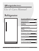 Use & Care Manual Refrigerator Record Serial/Model Numbers Safety Instructions 2-3 First Steps 3-4 Energy Saving Tips 4 Setting the Temperature Control 4 Refrigerator Features 4-5 Care and Cleaning 5 Warranty 6 Troubleshooting Guide READ AND SAVE THESE INSTRUCTIONS 2 7-8 P/N 216961200 (Mar 2004)