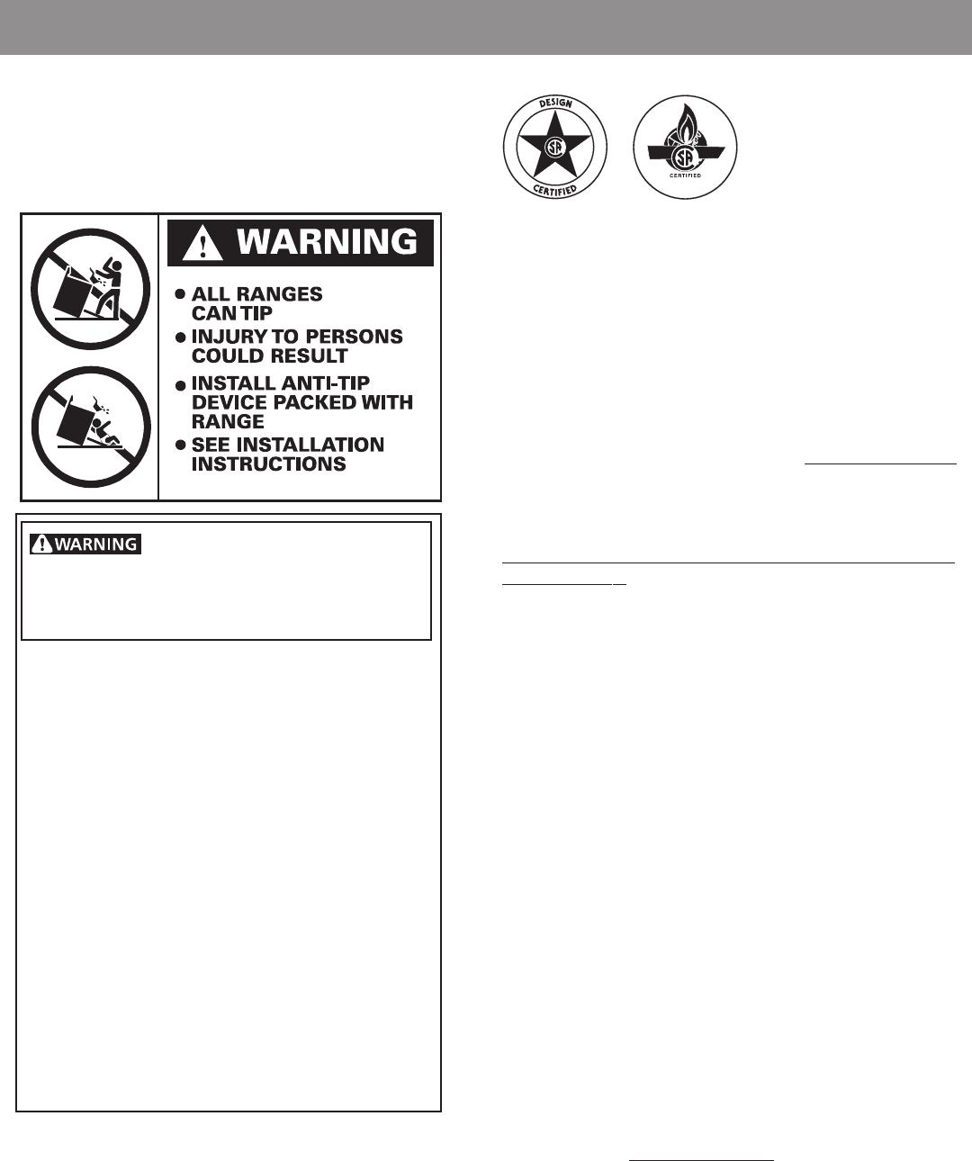 INSTALLATION INSTRUCTIONS - FREESTANDING GAS RANGE