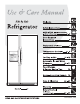Installation This Owner’s Guide provides specific operating instructions for your model. Use the refrigerator only as instructed in this Use & Care Manual. Before starting the refrigerator, follow these important first steps. LOCATION • • • • Choose a place that is near a grounded electrical outlet. Do Not use an extension cord or an adapter plug. If possible, place the refrigerator out of direct sunlight and away from the range, dishwasher or other heat sources.