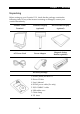 Chapter 1 — Welcome Unpacking Before setting up your Frontier ULV, check that the package contains the following items. If any of the items are missing or damaged, contact your vendor immediately. Frontier Touch Terminal Customer Display (optional) 2nd Customer Display (optional) AC Power Cord Power Adapter Magnetic Stripe Reader (optional) Accessory Package 1. Screws (black) for MSR x 1 2. Driver CD disc 3. User's Manual 4. DC24V power cable (Pro only) 5. PS/2 COMBO Y cable 6. USB rubber cove 7.
