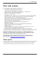 Your LCD screen... Your LCD screen... has a whole range of useful features and functions, e.g.: • • • TFT display (Thin Film Transistor; active matrix) minimal space requirements thanks to slim casing optimum ergonomic characteristics (totally distortion-free, excellent picture definition and colour purity right into the corners) • high degree of brightness and good contrast • high resolution (1440 x 900) • presentation of up to 16.