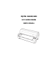 COMMAND SETS Function Command • n (bit 0 to 2: Specification of font number) (1) Resident fonts n m = 0, 0 m = 1, 0 0 1 2 3 4 5 6 7 Courier 10 OCR-B Prestige elite 12 OCR-A Draft Compressed Boldface PS Pica 10 Correspondence High-speed draft User's Manual ESC e q (n) ESC e s (n) ESC e p (n1) (n2 ) Command Sets (2) Downloaded fonts n = 0: Downloaded font 0 1: Downloaded font 1 Select print quality (font attributes) n = 0: Letter (360 × 180 dpi) 1: Correspondence (180 × 180 dpi) 2: Draft (120 × 1