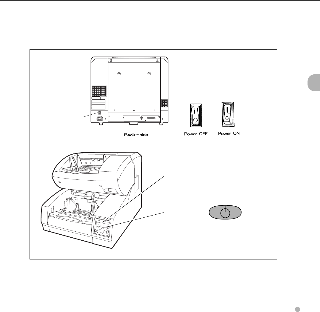 Press “I” side of the main line switch located at the back of the scanner. Press the power switch of