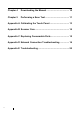 Chapter 4 Downloading the Manual ...................................... 10 Chapter 5 Performing a Scan Test ........................................ 11 Appendix A Calibrating the Touch Panel................................. 13 Appendix B Scanner Care ......................................................... 14 Appendix C Replacing Consumable Parts............................... 15 Appendix D Network Connection Troubleshooting ................ 16 Appendix E Troubleshooting ...............................