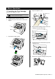 8. Turn the lever on the print cartridge toward right to fix it. 9. Close the imprinter cover. 10. Reset the Ink Remain Counter. You must reset the Ink Remain Counter whenever you replace the print cartridge. c On the [Start] menu, select [Programs]-[Scanner Utility for Microsoft Windows]-[Software Operation Panel]. d Select the [Device Setting] tab. e Click the [Clear] button at the [Remaining Ink (Pre)] button. Ö The Ink remain counter will reset to 100%.