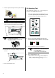 2. Basic Operations 2.1 Installing the Print Cartridge 4. Mount the print cartridge as follows: ATTENTION Imprinter cover When installing or replacing the print cartridge, be careful not to insert it out of place. 1. Confirm that the scanner is turned off. 2. Hold the blue part located on the center of the hopper. 3. Open the imprinter cover. 5. Move the Print cartridge holder to where the cartridge can be inserted easily. 6. Turn the blue lever toward left and open the cartridge holder. 7.