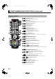 7701_01_E.book 10 ページ 2007年3月22日 木曜日 午後2時38分 PART NAMES AND FUNCTIONS (Continued) REMOTE CONTROL For details, see page Î. (Power button) Î E-18 Press to switch between Power ON and Off (Standby). y (LIGHT button) Press to light the buttons of the remote control. When no operation is performed, lighting of the buttons goes off after 8 seconds. R (FINE MODE button) Î E-23 Press to switch the Picture Mode. ! (WIDE button) Î E-23 Press to switch the screen size.
