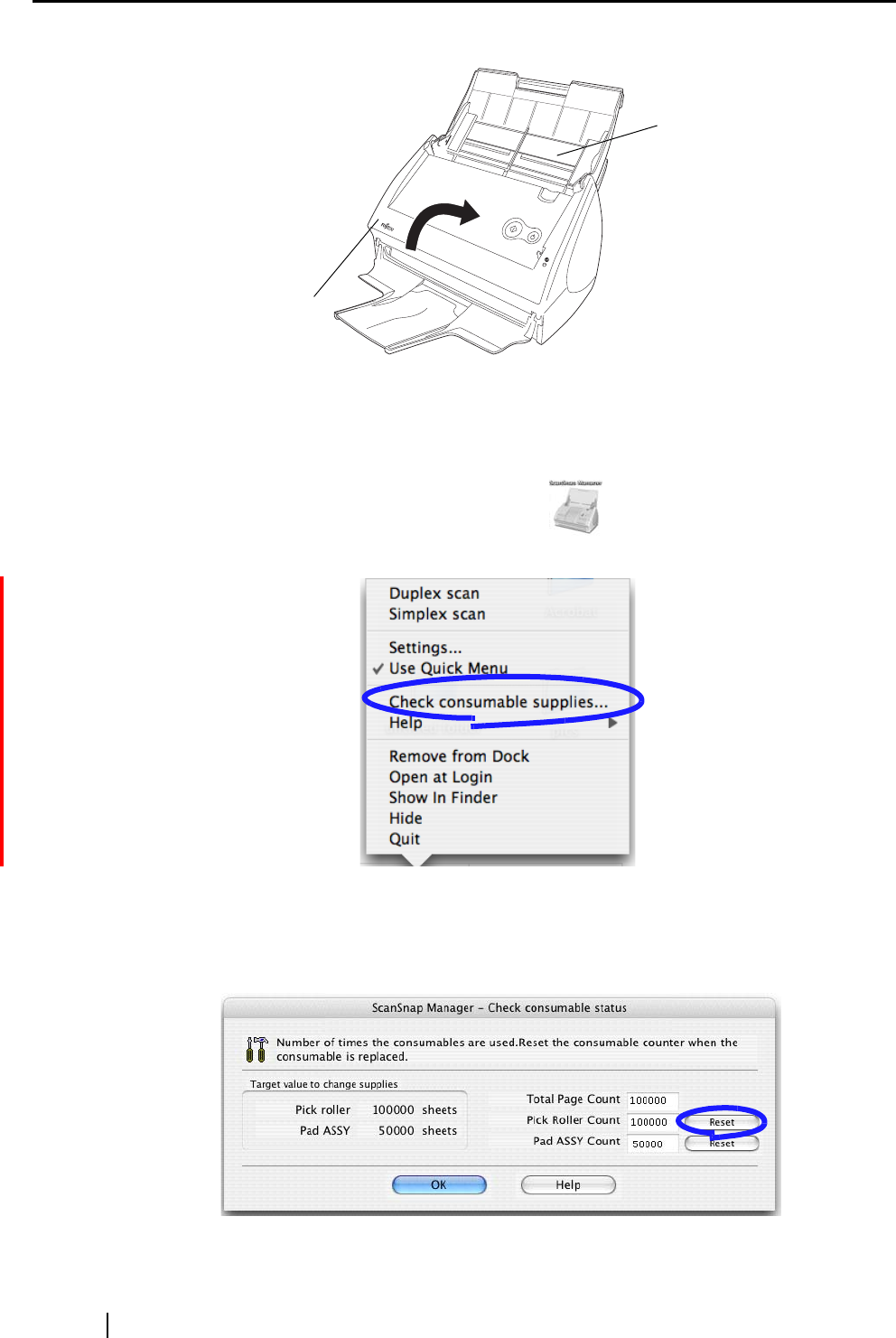 15. In the "Check consumable status" window, click the [Reset] button of the "Pick Roller