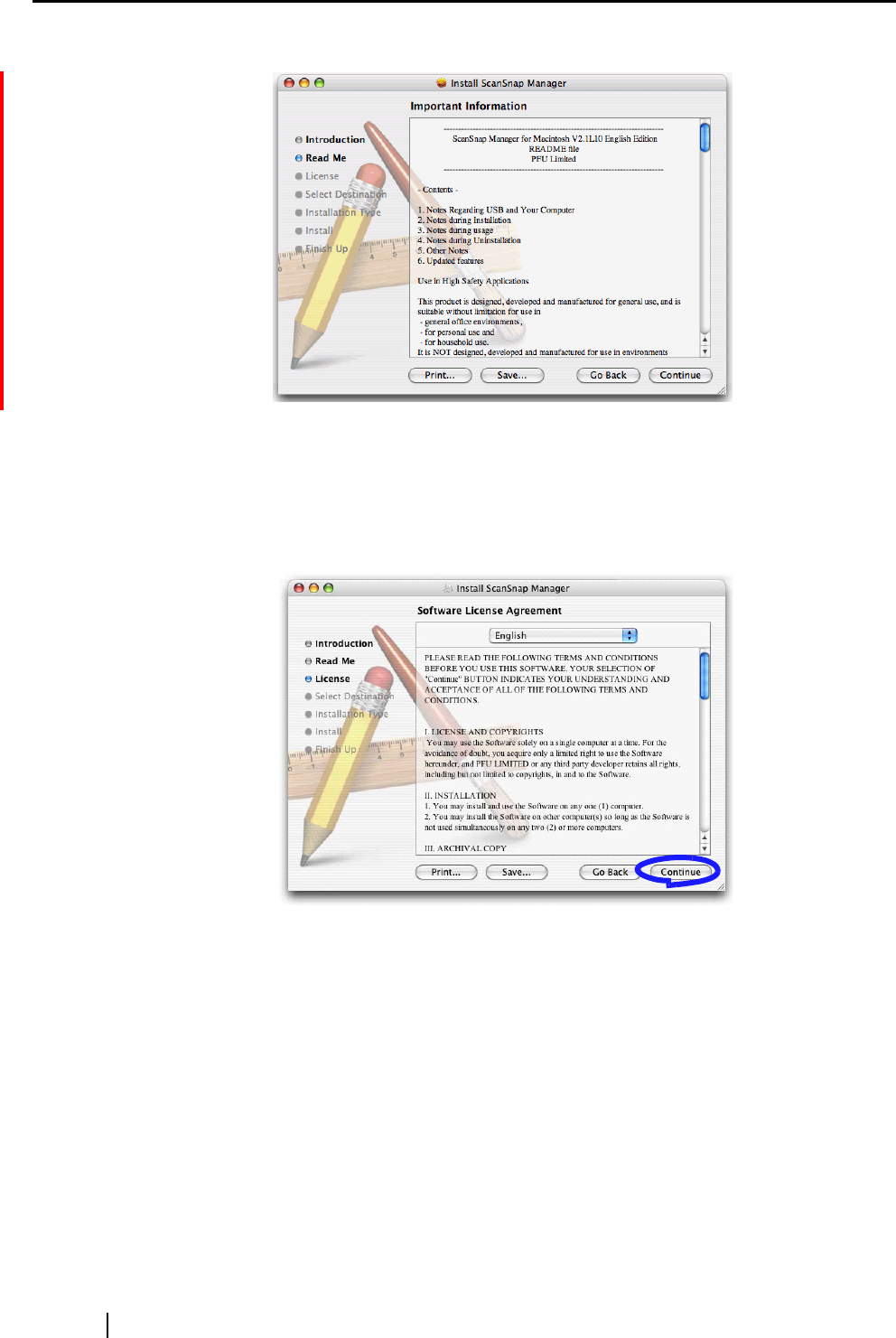 4. Check the contents of the "Software License Agreement," and click the [Continue]