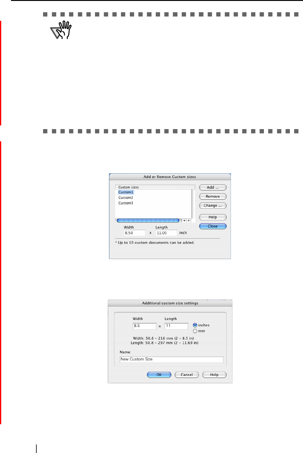 Clicking the [Add custom size] button displays the following window.