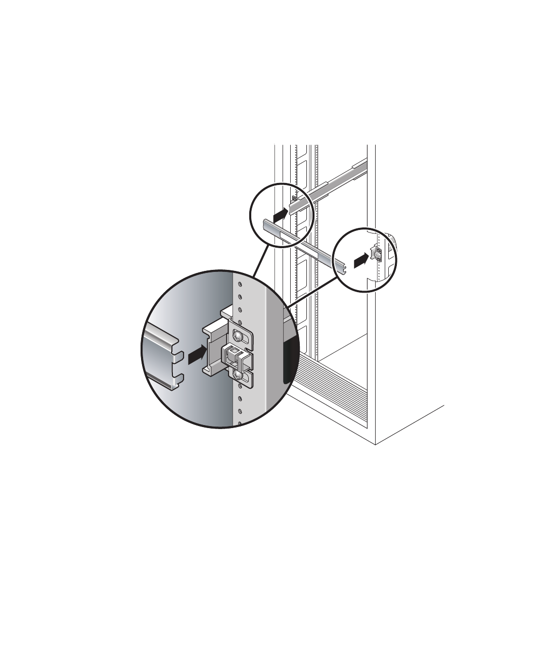 e. At the rear of the rack, repeat Step a through Step d. for the rear ends of the